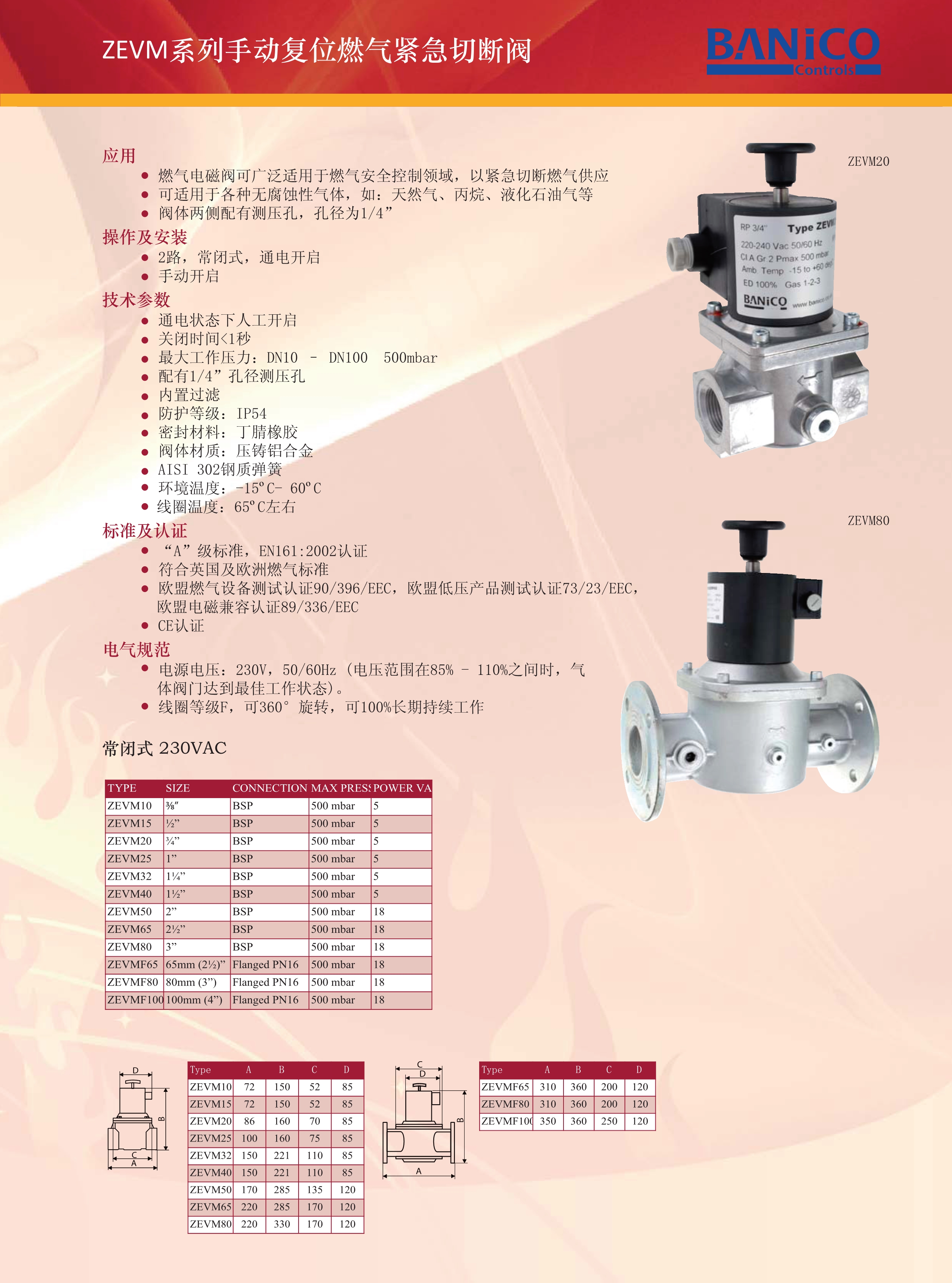 BANICO博尼科ZEVM系列手動復(fù)位燃氣緊急切斷閥